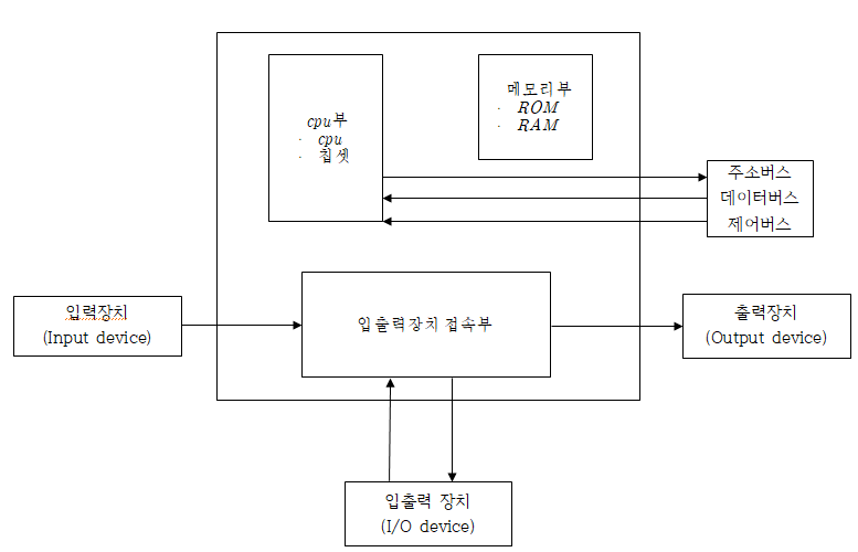 - 컴퓨터와 사용기간 인터페이스로 입출력 데이터를 전송한다.
