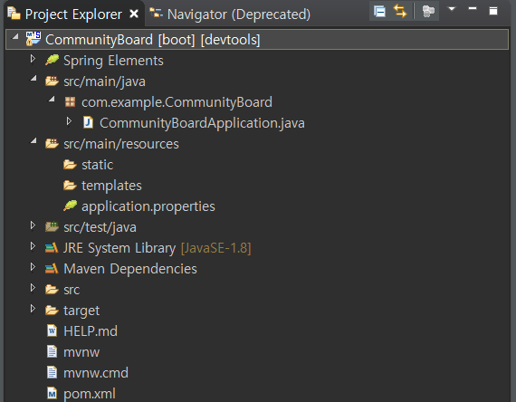 Project Explorer, Navigator로 바라본 프로젝트 생성 후의 모습이다.