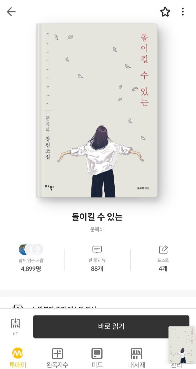 그 후 친구랑 통화를 하는데 정말 재미있게 읽은 책이라며 '돌이킬 수 있는'이라는 책을 추천해주었다.