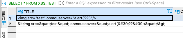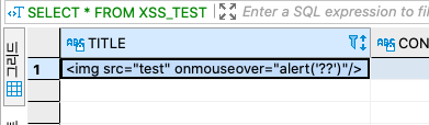 TITLE이라는 컬럼에만 '<img src="test" onmouseover="alert('??')"/>' 데이터를 입력해준다.