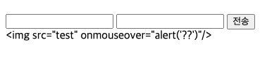 위의 스크립트가 그대로 출력이 되면서 img 태그로 인식을 하고 스크립트대로 마우스 커서를 올리면 alert이 뜨게 되었다.