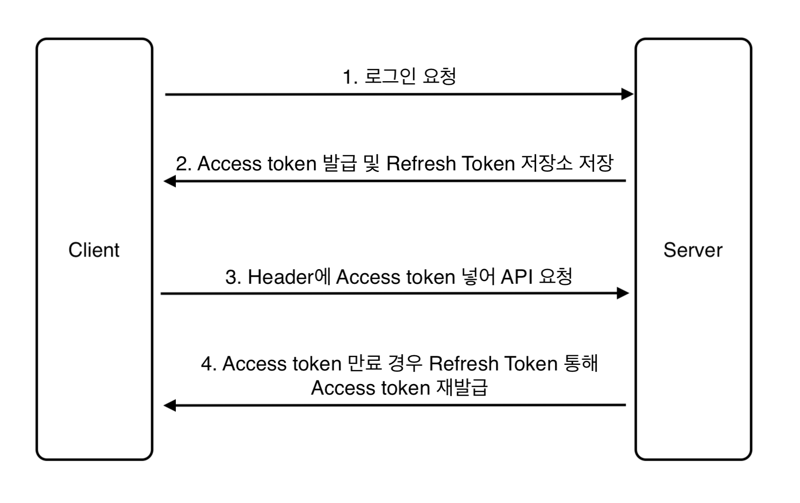 - 로그인한 유저는 헤더에 Access token을 가지고 다니며 API 통신을 할 때 서버에서 만료된 토큰인지 체크를 합니다.
